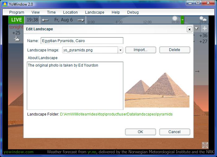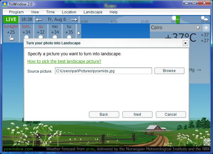 If you want us to include your landscape inside YoWindow, make sure the original picture is licensed free for "commercial use and modification" or to be in a PUBLIC DOMAIN or it may be your own picture.